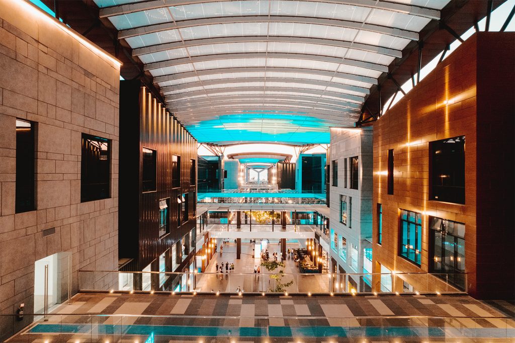 The district’s urban design further cushions it from climate impacts. Aseana features an imposing canopy in Parqal, arcaded sidewalks, and covered skywalks that allow people to move around safely during heavy rain. Utility infrastructure is underground, protecting power lines and telecom cables from strong winds.